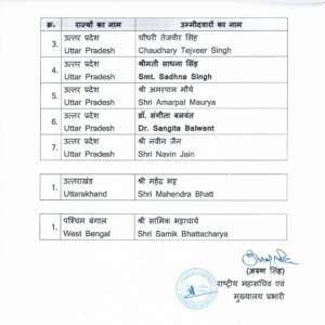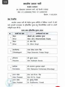 भाजपा के राज्यसभा प्रत्याशियों की सूची पर एक नजर :