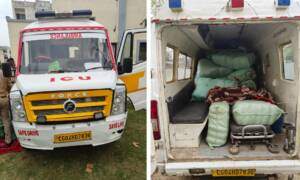 भाटापारा। जिले की पुलिस ने एम्बुलेंस की आड़ में में गांजे की हो रही तस्करी का खुलासा किया है। बलौदाबाजार-भाटापारा सड़क मार्ग पर की गई नाकेबंदी के दौरान इस वाहन को पकड़ा गया, जिसमें 2 करोड़ 25 लाख का गांजा लदा हुआ था।