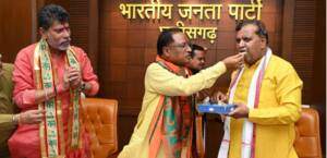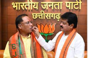 रायपुर। छत्तीसगढ़ में लोकसभा की 11 सीटों में से 10 पर बीजेपी की जीत से पार्टी में जश्न का माहौल है। बीजेपी के सभी प्रमुख नेताओं के साथ ही मुख्यमंत्री विष्णुदेव साय कुशाभाऊ ठाकरे परिसर पहुंचे और एक दूसरे की मिठाई खिलाकर बधाई दी।