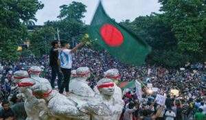 बांग्लादेश के सेना प्रमुख जनरल वकार-उज-जमां द्वारा प्रधानमंत्री शेख हसीना के इस्तीफे की घोषणा के बाद प्रदर्शनकारी अपनी जीत का जश्न मनाने के लिए सड़कों पर उतर आए। बांग्लादेश से आई तस्वीरों में प्रदर्शनकारी पीएम के सरकारी आवास के अंदर नजर आए। हालांकि उस समय शेख हसीना वहां से निकल चुकी थीं। तस्वीरों में प्रदर्शनकारी पीएम के आधिकारिक आवास ‘गणभवन’ में तोड़फोड़ और लूटपाट करते हुए दिखाया गया है।