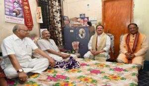 एयरपोर्ट से जेपी नड्डा सीधे केनाल रोड स्थित रानी दुर्गावती की प्रतिमा में माल्यार्पण करने पहुंचे। इसके बाद वे विधायक कॉलोनी स्थित पार्टी के सबसे वरिष्ठ नेता और पूर्व राज्यसभा सांसद गोपाल व्यास के निवास पहुंचे। इस दौरान मुख्यमंत्री साय और प्रदेशाध्यक्ष किरणदेव भी मौजूद रहे। जेपी नड्डा ने पूर्व सांसद को पार्टी की सदस्यता दिलाई और उनका पैर छूकर आशीर्वाद लिया। करीब 20 मिनट उनके निवास पर मौजूद रहे।