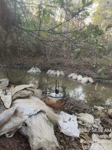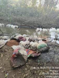 महासमुंद जिला कलेक्टर विनय कुमार लंगेह के निर्देश एवं प्रभारी जिला आबकारी अधिकारी निधीष कुमार कोष्टी एवं मण्डल प्रभारी दीपक कुमार ठाकुर के मार्गदर्शन में आबकारी वृत्त सांकरा अंतर्गत उतेकेल जंगल में नाला किनारे चल रहे अवैध शराब भट्ठियों में पृथक-पृथक छापामार कार्यवाही की गई। टीम सबसे पहले ग्राम उतेकेल के जंगल में नाला किनारे पहुंची। इस दौरान भट्ठी चला रहे लोग भाग खड़े हुए। ऐसे में गवाहों के समक्ष विधिवत तलाशी लिए जाने पर हाथ भट्टी चढ़ता भट्टा के दो सेट को नष्ट कर कुल जुमला 460 बल्क लीटर हाथ भट्टी महुआ शराब (बाजार मूल्य – 92000/- रु.) जप्त कर मदिरा को सील बंद कर कब्जे में लिया गया एवं 50 कि. ग्रा. क्षमता वाली 180 नग बोरियों में भरी 9000 कि.ग्रा. मदिरा बनाने योग्य महुआ लाहन (बाजार 450000/ रु) जप्त कर लाहन का सेंपल लेकर शेष नष्ट किया गयाl