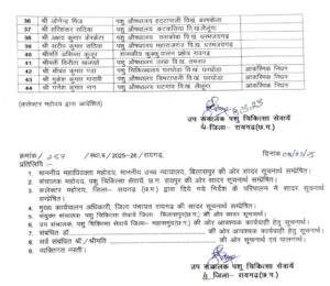इन सभी गंभीर अनियमितताओं के आधार पर उपसंचालक पशु चिकित्सा सेवाएं, रायगढ़ द्वारा 44 कर्मचारियों को सेवा से पदच्युत करने का आदेश जारी किया गया है।