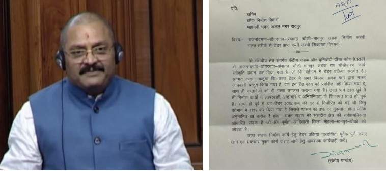 मिली जानकारी के मुताबिक राजनांदगांव से अंबागढ़ चौकी के रास्ते मोहला-मानपुर तक लगभग 95 किमी सड़क के निर्माण हेतु केंद्र ने करीब 300 करोड़ रुपए की स्वीकृति दी है। सड़क निर्माण के लिए अमर बिल्डर्स को अधिकृत किया गया है। अब इस मामले में अमर बिल्डर्स पर कई अहम जानकारी छुपाने का आरोप लगा है। सांसद पांडे ने सचिव को लिखे पत्र में स्पष्ट तौर पर टेंडर हासिल करने वाली कंपनी पर पूर्व में टेंडर 20 प्रतिशत बिलो में स्वीकृत किया गया था। बाद में उसे बदलकर 17 प्रतिशत किया गया। इससे सरकार को 8 करोड़ रुपए का नुकसान हो रहा है।