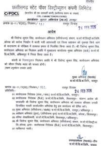 कोरबा। CSEB के मुख्य अभियंता ने कोरबा में परियोजना में पदस्थ कार्यपालन अभियंता जितेन्द्र कुमार सिंह को निलंबित कर दिया है। इस अफसर का निलंबन अवधि में मुख्यालय कार्यालय मुख्य अभियंता (अं.क्षे.) छ.स्टे.पॉ. डि.कं.लिमि., अंबिकापुर में नियत किया जाता है।