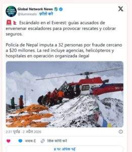 नेपाल पुलिस ने इस मामले में 32 लोगों के खिलाफ केस दर्ज किया है। इनमें ट्रेकिंग कंपनी के मालिक, हेलिकॉप्टर ऑपरेटर और अस्पताल के अधिकारी शामिल हैं। जांच जनवरी में शुरू हुई थी, जब तीन बड़ी रेस्क्यू कंपनियों के 6 अधिकारियों को गिरफ्तार किया गया था। अब इस केस को संगठित अपराध और धोखाधड़ी के तौर पर देखा जा रहा है।